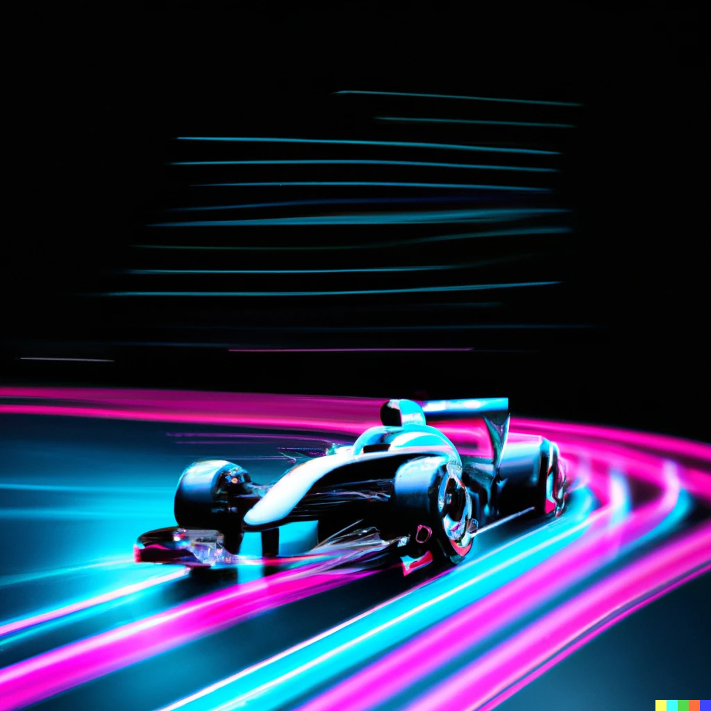 A synthwave style sunset above the reflecting water of the sea, digital art