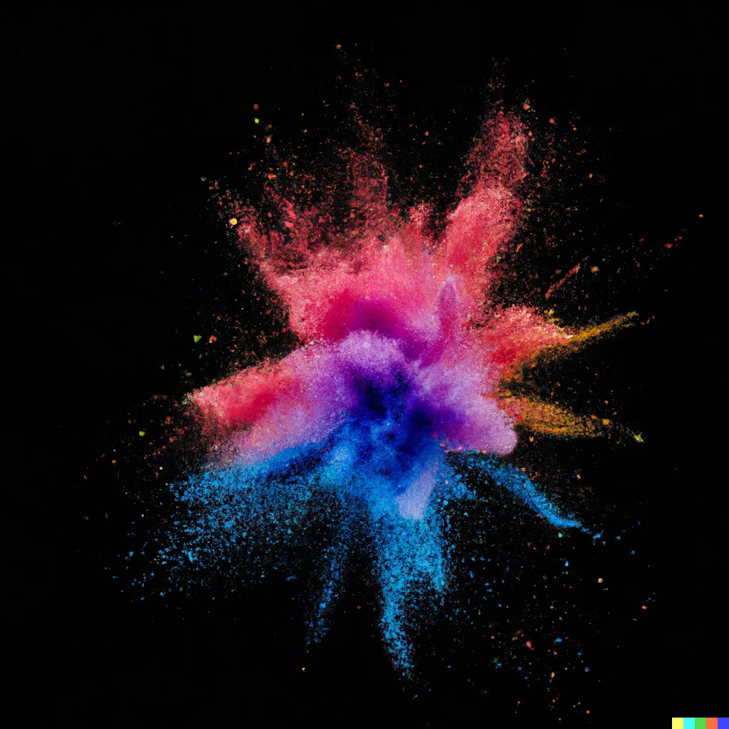 An expressive oil painting of a basketball player dunking, depicted as an explosion of a nebula