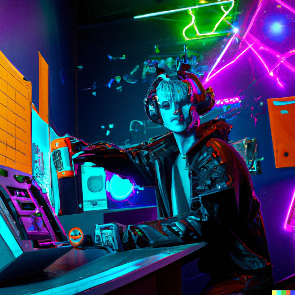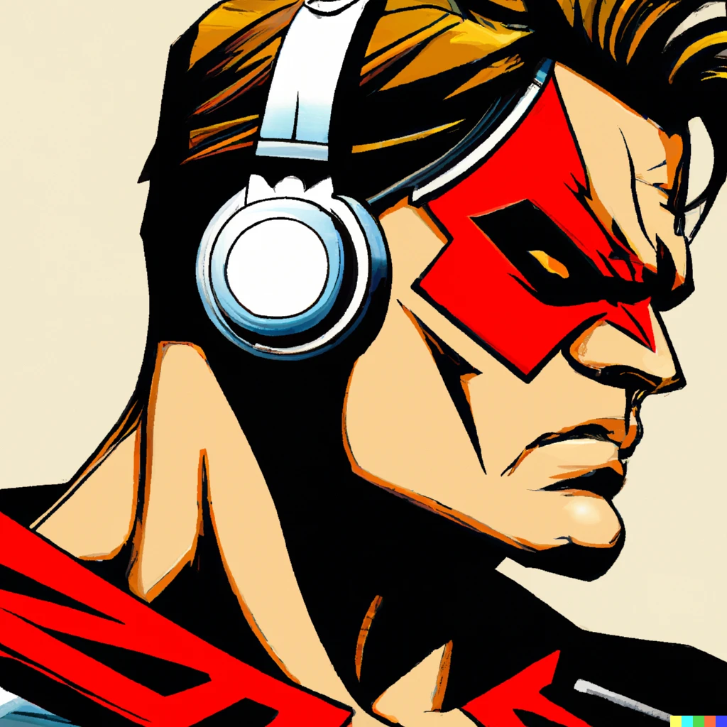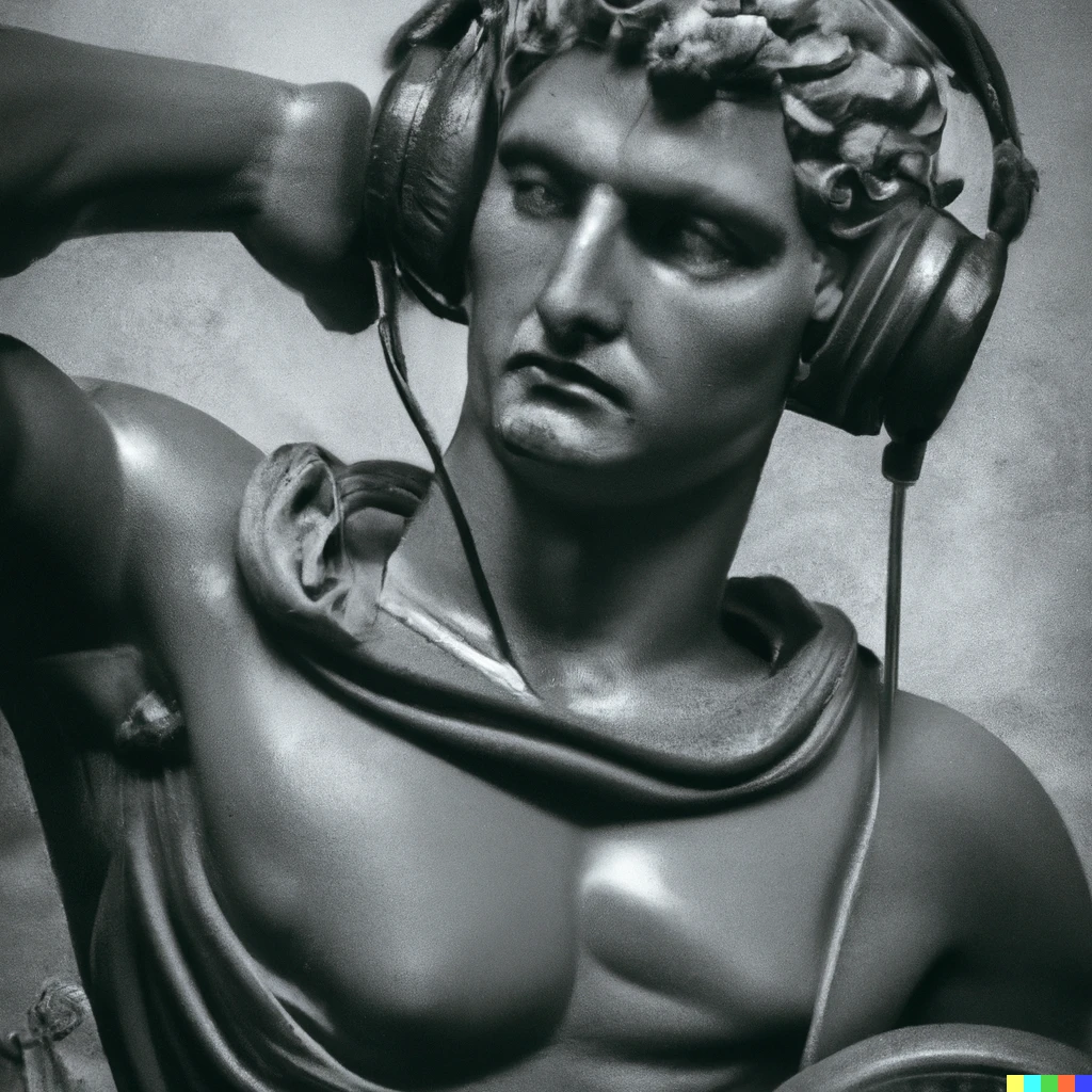 A photo of Michelangelo_s sculpture of David wearing headphones djing